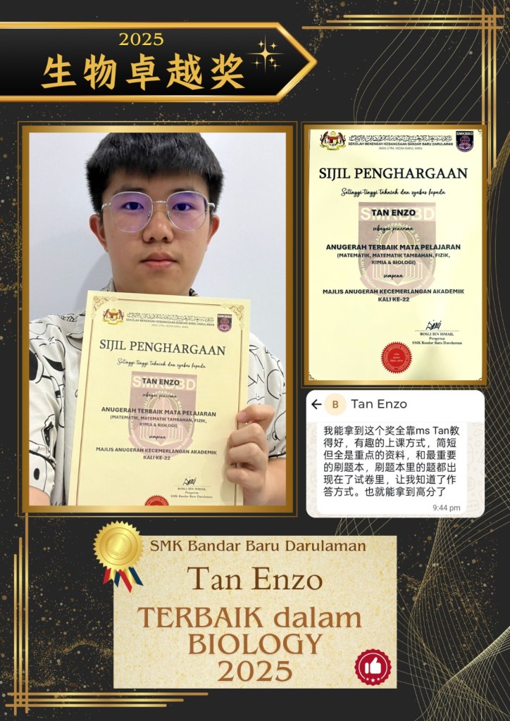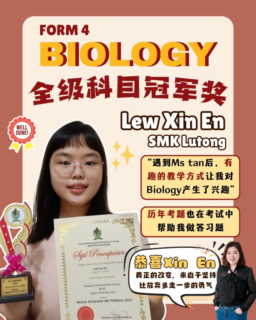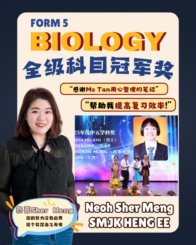 In 2014, I founded Ms Tan Biology & Science, and in 2023, I officially registered Ms Tan Education Sdn Bhd to provide more structured and professional support to a wider group of students.