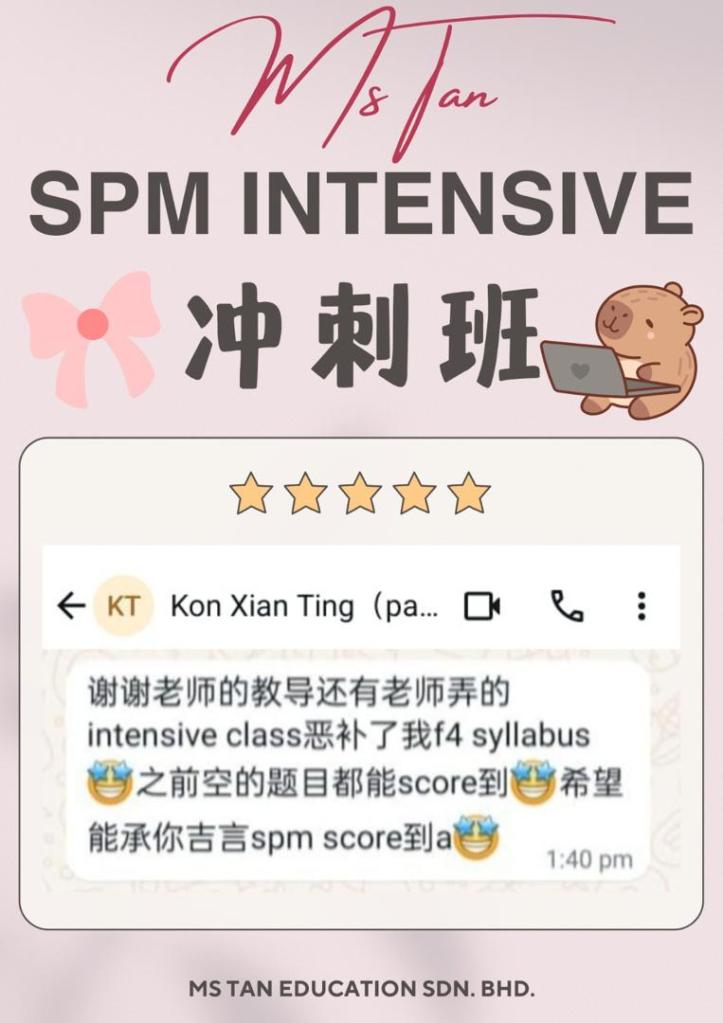 大家好,我是 Ms Tan,一位专注 UASA F1 – F3 Science 与 SPM Biology 教学的补习老师,也是 Ms Tan Education Sdn Bhd 的创办人。